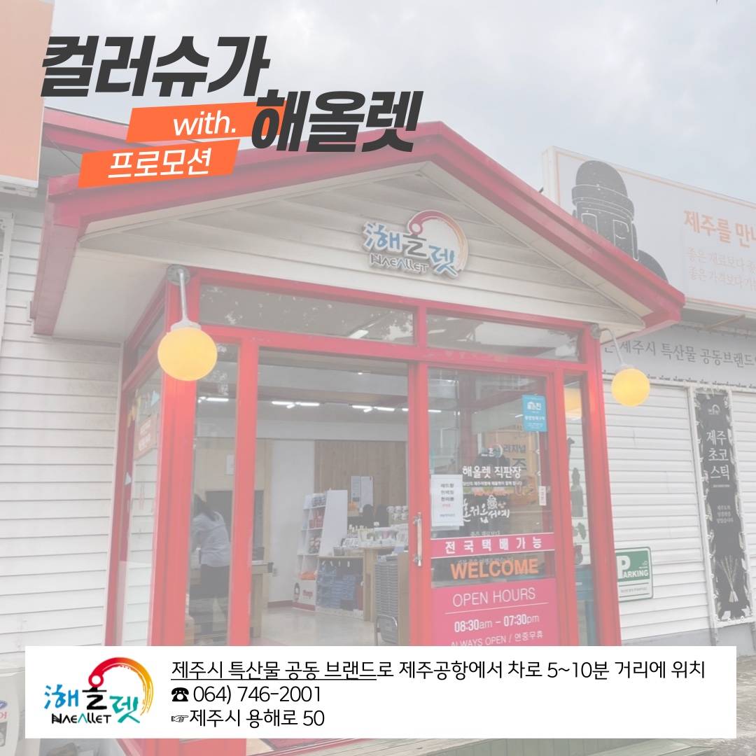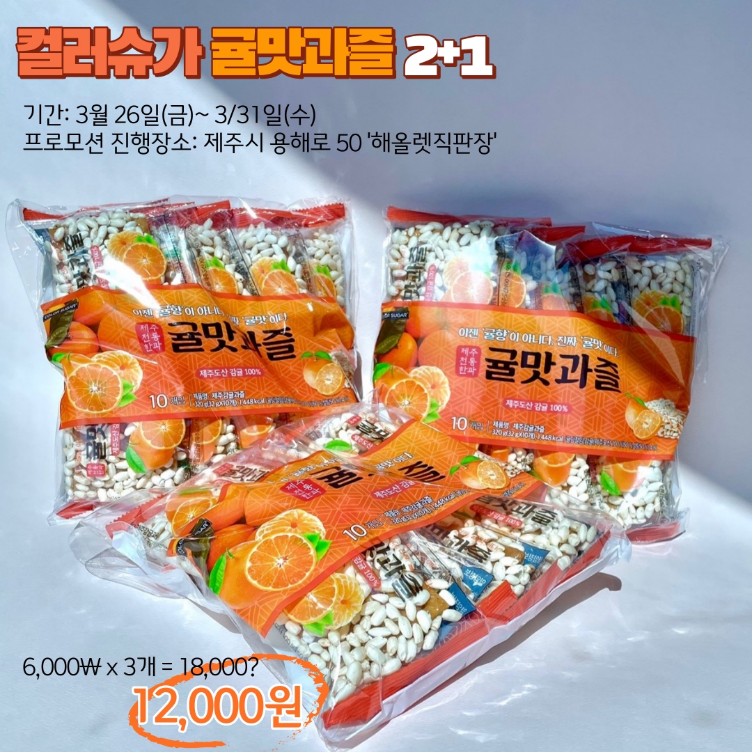 현재 제주도내 단독으로 제주시 공동 특산물 브랜드인 '해올렛 직판장'에서 2+1 행사를 진행하고 있습니다.